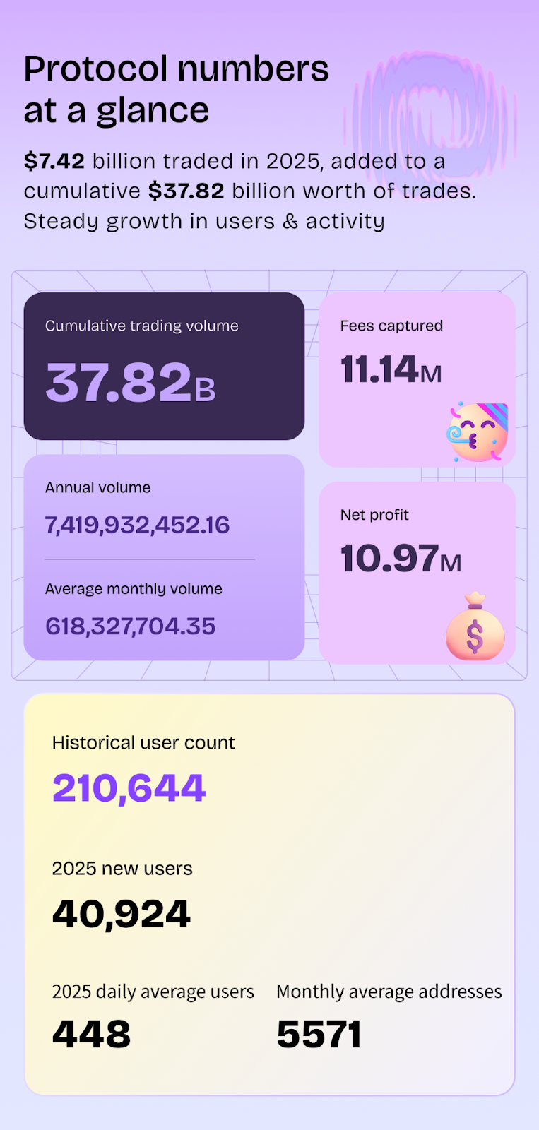 In 2025, as competition in the DEX sector intensified and liquidity continued to expand, Tokenlon established itself as a trusted on-chain trading platform for mainstream crypto traders through its stable and reliable performance. Throughout the year, 40,924 new & unique addresses completed swaps via the protocol, reaching a cumulative on-chain trading volume of $7.42 billion. Since its launch in 2019, Tokenlon has served 210,644 users and facilitated a total of $37.82 billion in transactions, steadily accumulating users and volume amidst the industry's multi-chain expansion.