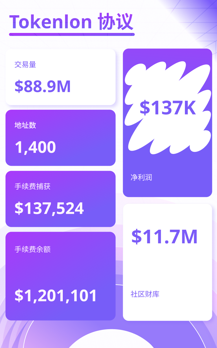 - Tokenlon 本周交易量为 $88,989,164.83,交易地址数 1,400,交易笔数 3,257;手续费捕获 $137,524.38,手续费净利润为 $137,342.59,当前手续费余额 $1,201,101.28,社区财库总额 $11,750,103.36。